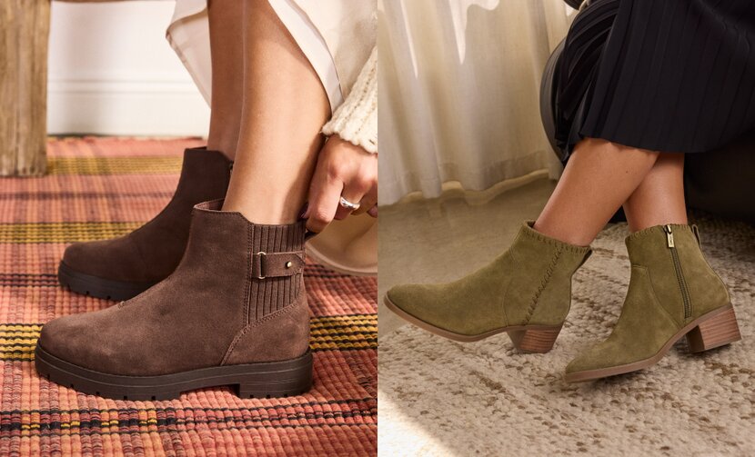 Astrid features a soft suede upper accented with a leather strap and pin-hardware details, giving it a timeless look that moves easily from casual outings to dressier occasions. Delilah, crafted from soft suede, stands out with its whipstitch collar and seam-line details, adding a bold touch to its ranch-ready design.